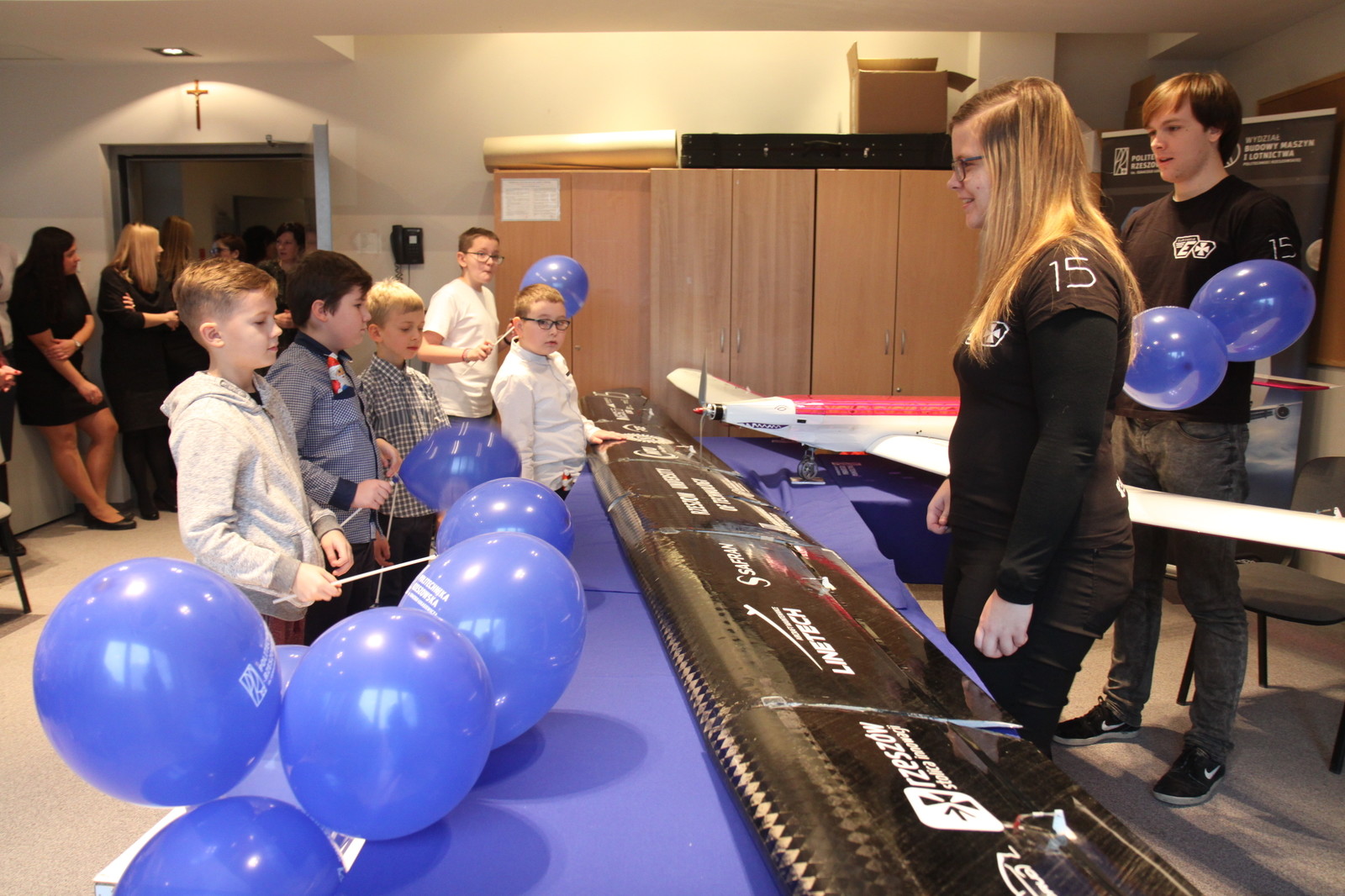 Jesteśmy w szpitalu już po raz drugi, w tym roku pokazujemy modele samolotów z zawodów SAE Aero Design 2016 i z Air Cargo Challenge w Zagrzebiu. Zainteresowanie ze strony dzieci jest duże, najczęściej pytają o to dlaczego w modelu znajdują się piłeczki. Są one imitacją pasażerów siedzących w prawdziwym samolocie – mówi Aleksandra Pasich studentka II roku kierunku Lotnictwo i Kosmonautyka na Wydziale Budowy Maszyn i Lotnictwa, należąca do koła EUROAVIA Rzeszów.
