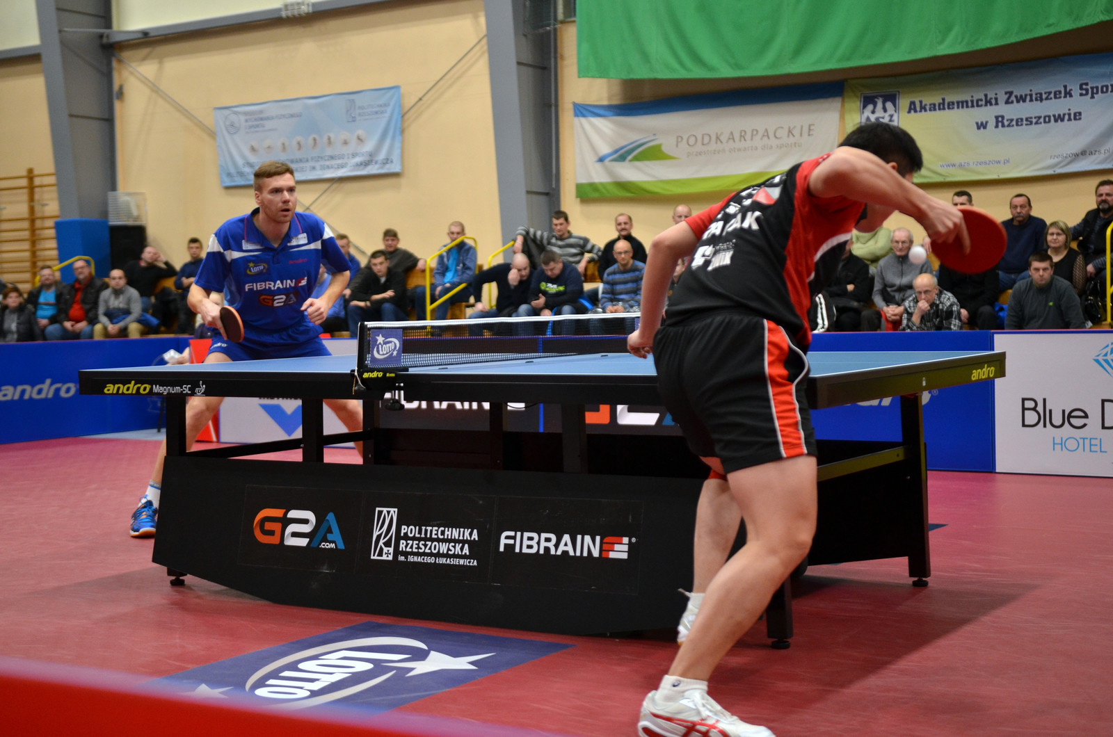 Gdy akademicy zobaczyli, że zagrają Gao Ning wraz z Gionisem i Górakiem, wiedzieli, że o jakiekolwiek punkty będzie bardzo ciężko. Losowanie było korzystne dla gospodarzy, którzy chcieli, aby Lewandowski zagrał z Górakiem. Pierwsza partia i pierwsze emocje. Doskonale usposobiony Lakeev wygrał dwa sety z Gao i w trzeciej partii miał trzy setbole, których nie wykorzystał. Gao doprowadził do wyrównania w setach i na myśl przyszło siatkarskie powiedzenie: kto nie wygrywa 3:0, ten… wygrywa 3:2! Vasilij udowodnił, że w tenisie stołowym funkcjonują inne reguły. Druga partia dla zawodnika gości Gionisa, który pokazał, że jego pozycja w światowym rankingu (35.) nie jest przypadkowa. Z nieźle grającym na obronę Gołębiowskim wygrał 3:0, imponując… bezbłędnym atakiem forhendowym. W trzeciej partii doszło do pojedynku mającego doskonały sezon międzynarodowy (wicemistrzostwo Europy w deblu) i ligowy (3. w rankingu supeligi) Góraka z Lewandowskim. Górak chciał udowodnić, że porażka w ostatnim czempionacie Polski z „Lewym” to był przypadek. Nic z tego. Lewandowski, po wspaniałym, obfitującym w wymianę widowiskowych top spinów pojedynku, wygrał 3:2 i jeden punkt był już w Rzeszowie! Na tym jednak nie koniec. Będący w gazie straniero miejscowych udowodnił umiejętność gry Rosjan przeciwko obrońcom. Grek zdobył w dwóch setach zaledwie 10 punktów i sensacja stała się faktem. Zwycięzcy pokazują, że tak wyrównanych rozgrywek ligowych w Polsce jeszcze nie było – każdy może wygrać z każdym, co dzieje się niemal w każdej kolejce. LOTTO Superliga jest nie tylko najmocniejszą, lecz także najbardziej wyrównaną europejską ligą.