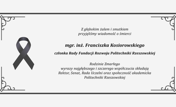 Rodzinie Zmarłego wyrazy najgłębszego i szczerego współczucia składają Rektor, Senat, Rada Uczelni oraz społeczność akademicka Politechniki Rzeszowskiej.
