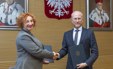 Umowę podpisali prorektor ds. rozwoju i współpracy Politechniki Rzeszowskiej prof. dr hab. inż. Jarosław Sęp i dyrektor personalna, członki zarządu Collins Aerospace Kaja Zielonka.