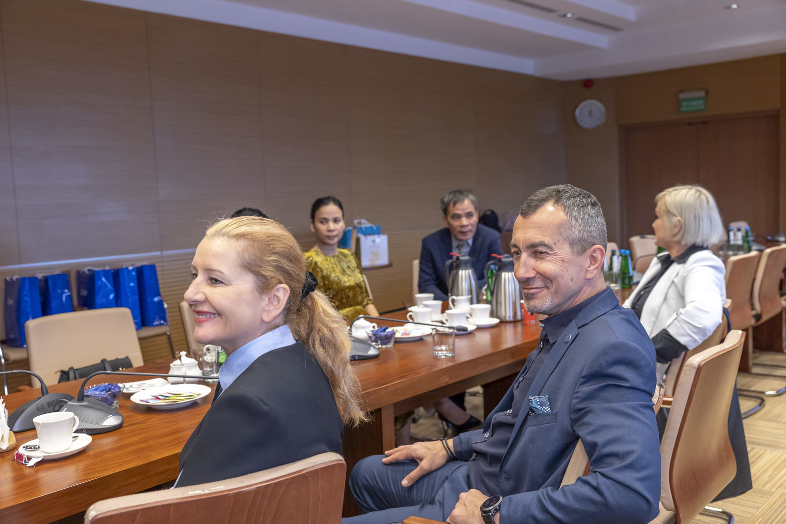 Spotkanie na Wydziale Zarządzania poświęcone było ustaleniom warunków dalszego kształcenia na najczęściej wybieranych przez kandydatów z Wietnamu kierunkach: zarządzanie oraz finanse i rachunkowość. W spotkaniu uczestniczyli prorektor ds. studenckich prof. dr hab. Grzegorz Ostasz, dziekan WZ dr hab. Beata Zatwarnicka-Madura, prof. PRz, kierownik Działu Współpracy Międzynarodowej mgr Edyta Ptaszek. W sali Rady Wydziału Zarządzania delegacja spotkała się z członkami rady dyscypliny nauki o zarządzaniu i jakości. Następnie goście wysłuchali prezentacji i pokazu eksperymentów w Laboratorium Towaroznawstwa, Laboratorium Kryminalistyki i Rozszerzonej Rzeczywistości. Pokazano wybrane doświadczenia dotyczące towaroznawczej oceny żywności. W celu przybliżenia tematyki badań przeprowadzanych w tych laboratoriach zaprezentowano proces ozonowania żywności, omówiono także proces pomiaru luminancji do oceny zawartości tłuszczu w produktach mięsnych. Laboratorium Badań Kryminalistycznych zaprezentowało sposoby zabezpieczania śladów linii papilarnych i innych dowodów pozostawianych na miejscu przestępstwa.