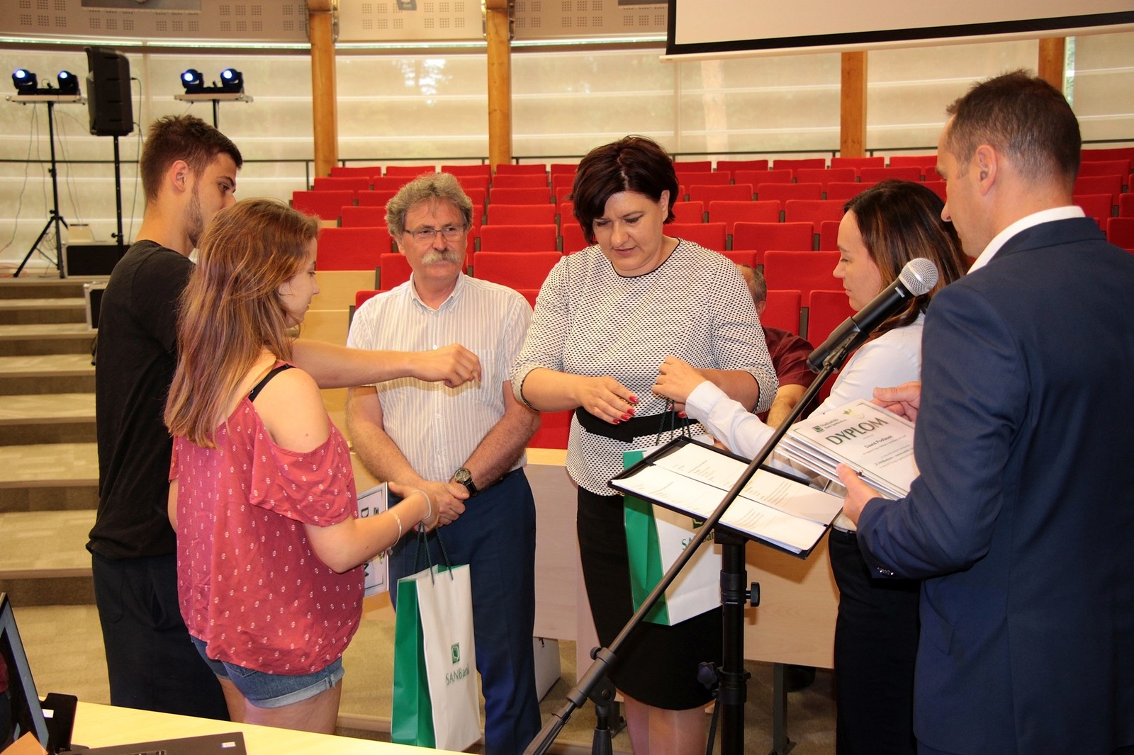 Dyplomy dla uczestników i nagrody dla zwycięzców ufundowane przez SANBank wręczyli: Magdalena Więckowicz p.o. prezesa Zarządu SANBanku oraz dr. hab. inż. Aleksander Mazurkow, prof. PRz, dziekan Wydziału Mechaniczno-Technologicznego PRz w Stalowej Woli.
