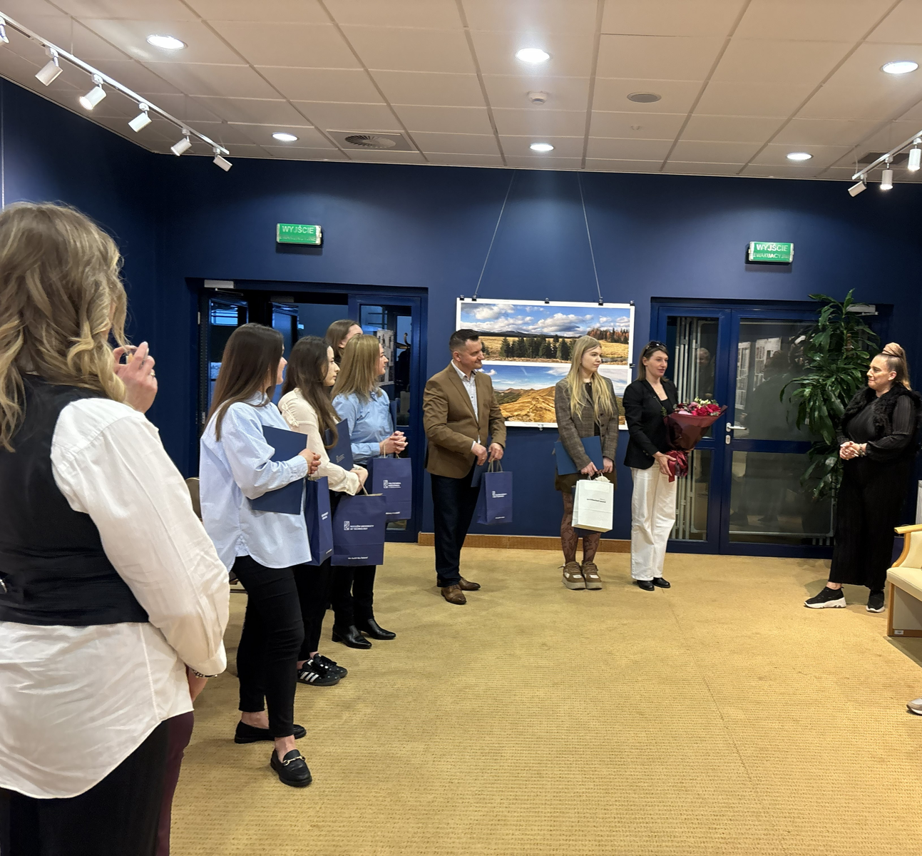 Po oficjalnej części absolwenci wymieniali się refleksjami i doświadczeniami po odbytych studiach, podkreślali wartość zdobytej wiedzy, możliwość rozwoju pod okiem doświadczonych wykładowców oraz praktyczny wymiar zajęć. Uroczystości towarzyszyło otwarcie wystawy prac projektowych absolwentów studiów podyplomowych „Architektura wnętrz i wystawiennictwa”. Ekspozycja ukazała kreatywne podejście do aranżacji wnętrz oraz wystawiennictwa, a także różnorodność stylów i koncepcyjne rozwiązania przestrzenne. Była to doskonała okazja, by zaprezentować owoce kilkumiesięcznej pracy oraz wymienić się spostrzeżeniami na temat aktualnych trendów w architekturze wnętrz.