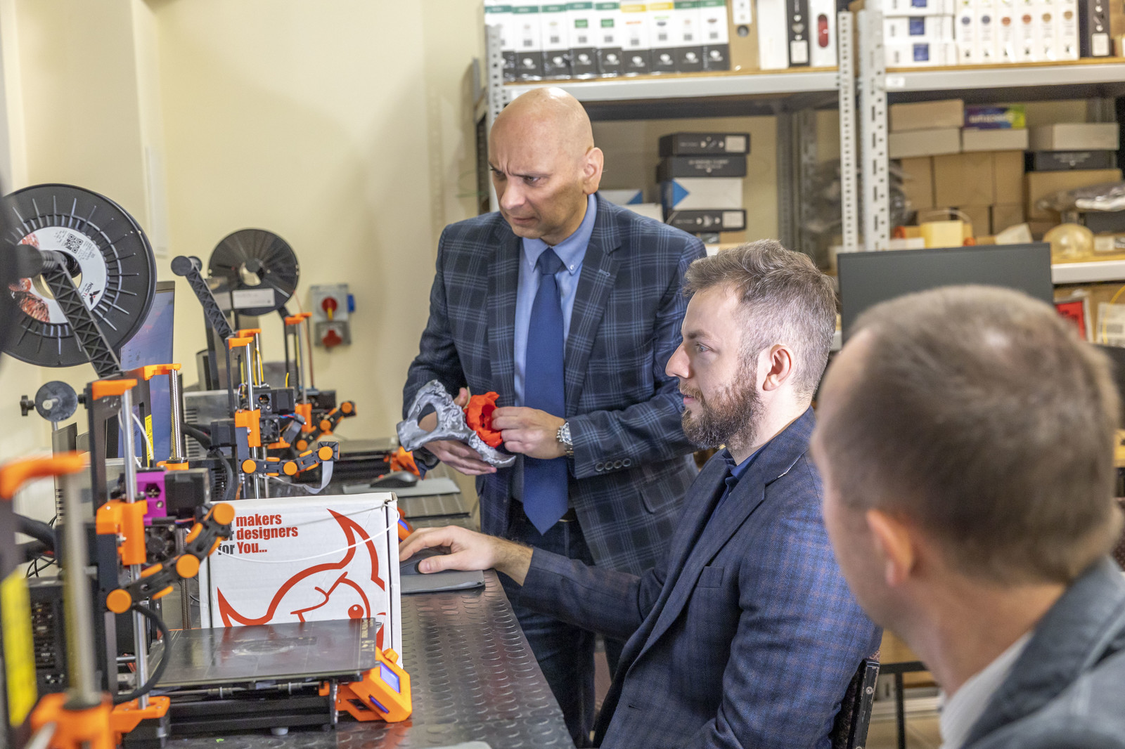 Realizacja badań była możliwa dzięki współpracy wielu zespołów badawczych z Politechniki Rzeszowskiej i Uniwersytetu Rzeszowskiego. Można tu wyróżnić kilka obszarów badawczych, do których należą m.in. ortopedia, chirurgia twarzowo-szczękowa czy urologia i nefrologia. Na Politechnice Rzeszowskiej pracuje zespół naukowców z obszaru inżynierii medycznej, w którego skład wchodzą: w obszarze druku 3D i inżynierii rekonstrukcyjnej – prof. dr hab. inż. Grzegorz Budzik, dr hab. inż. Tomasz Dziubek, prof. PRz, dr hab. inż. Sławomir Miechowicz, prof. PRz, dr inż. Łukasz Przeszłowski, dr inż. Małgorzata Zaborniak, dr inż. Paweł Turek z Katedry Technik Wytwarzania i Automatyzacji oraz dr inż. Sławomir Wolski z Katedry Fizyki i Inżynierii Medycznej na Wydziale Matematyki i Fizyki Stosowanej, w obszarze inżynierii materiałowej i kompozytów stosowanych w medycynie – prof. dr hab. inż. Mariusz Oleksy i dr inż. Katarzyna Bulanda z Katedry Kompozytów Polimerowych na Wydziale Chemicznym. Naukowcy z Politechniki Rzeszowskiej współpracują z zespołami naukowymi z Uniwersytetu Rzeszowskiego m.in. w obszarach: ortopedii – z zespołem prof. dr hab. n. med. Sławomira Sneli, opatrunków hydrożelowych i specjalnych – z zespołem prof. dr hab. n. med. Artura Mazura, chirurgii twarzowo-szczękowej – z zespołem dr hab. n. med. Bogumiła Lewandowskiego, prof. UR, neurochirurgii – z zespołem dr hab. n.med. Jacka Szczygielskiego, prof. UR, kardiochirurgii – z zespołem dr hab. n.med. Kazimierza Widenki, prof. UR, urologii i nefrologii – z zespołem dr n.med. Krzysztofa Balawendra oraz biochemii z zespołem – dr hab. inż. Doroty Bartusik-Aebischer, prof. UR. Ważnym ogniwem spajającym prace wielu zespołów badawczych jest klaster TECHNOMED – technologie w medycynie, którego sygnatariuszami są Politechnika Rzeszowska i Uniwersytet Rzeszowski.